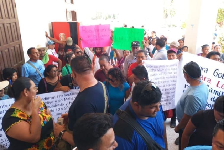 La resolución legal de esa disputa se ha retrasado por la construcción del tren maya. Él dice que el tren retrasó el programa de regularización de la propiedad en esa comunidad “ya que la prioridad tenía que ser entregada al proyecto presidencial”.