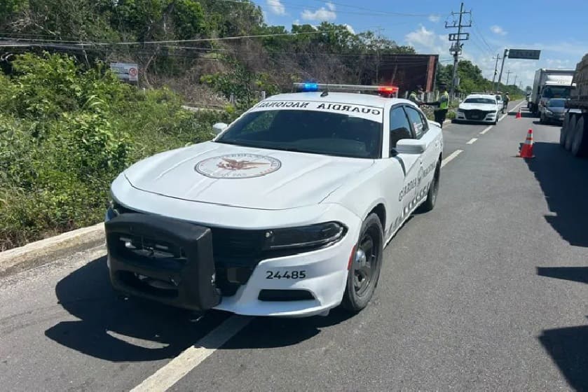 La Guardia Nacional fue la primera en la escena en respuesta a los informes de automovilistas sobre el accidente de un solo vehículo. En una zanja al norte de Playa del Carmen, encontraron una camioneta muy dañada enredada en las líneas eléctricas de la ciudad.