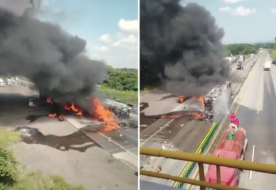 El tráfico que se dirige hacia Veracruz fue detenido por el accidente que dejó cerrados ambos carriles. El personal de la división federal de carreteras y carreteras y puentes cerró los carriles para evitar que las llamas lleguen a otros vehículos.