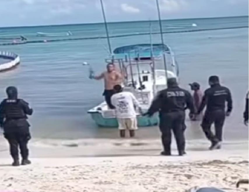 El arresto tuvo lugar en la playa y CTM en el centro de Playa del Carmen después de que la policía recibió quejas públicas de un hombre agresivo. La policía respondió al informe de las 4:00 pm, ubicándolo en su bote desde donde procedieron a arrestarlo.