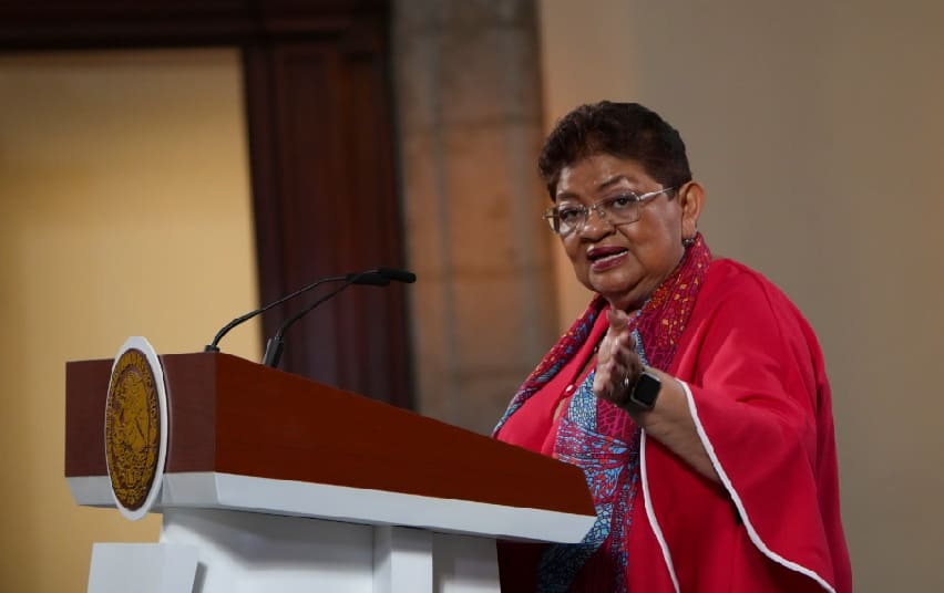 Ernestina Godoy Ramos habla sobre la reforma el viernes durante la conferencia de prensa presidencial.