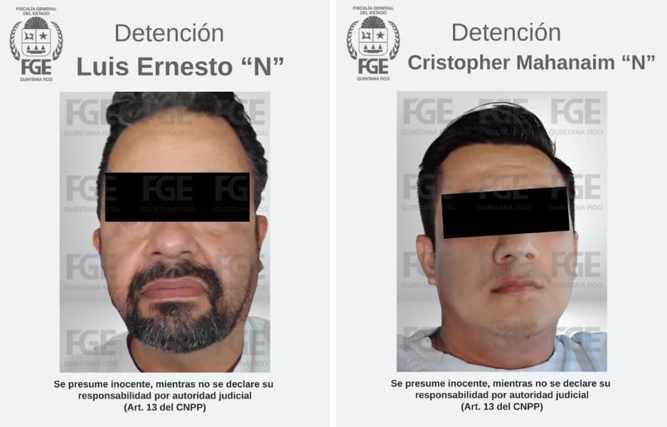 La policía dice que Luis Ernesto “N” y Cristopher Mahanaim “n” fueron detenidos después de que un juez de Cancún firmó sus órdenes de arresto.
