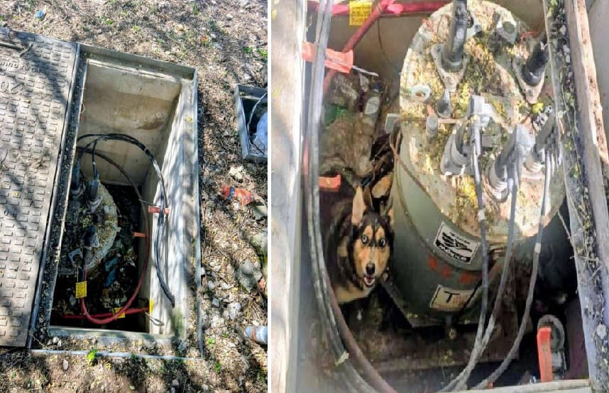 Una vecina cercana pidió ayuda a las autoridades después de haber escuchado ladridos extraños. Cuando siguió el sonido, encontró dos huskies en el fondo de la caja de CFE.