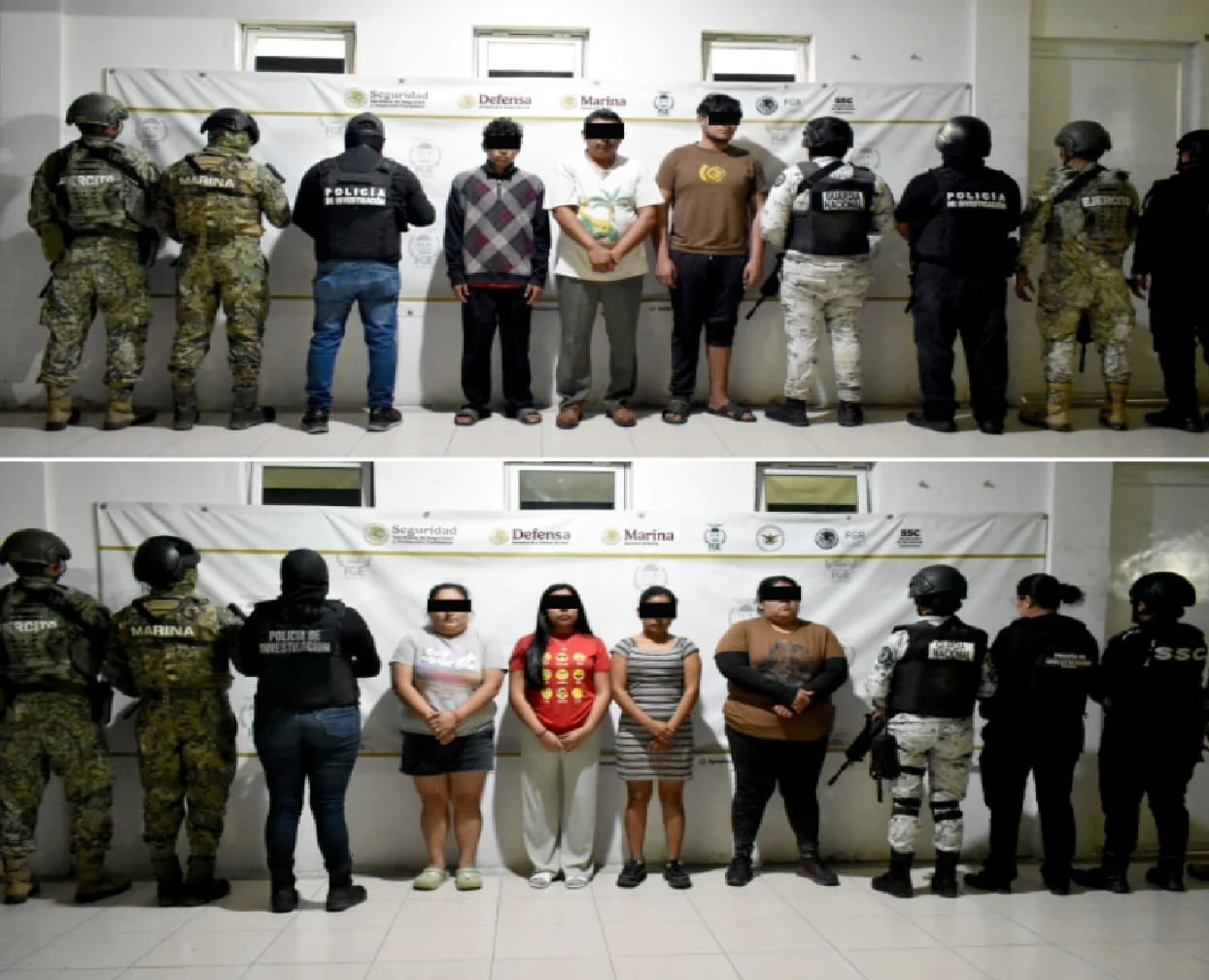 La Policía informó que tienen bajo custodia a Heydi Esmeralda “N”, Beatriz “N”, Elvira Judith “N”, Zeili Mariela “N”, Jesús Emmanuel “N”, René “N”, Cristian Jafed “N” y Santos Eduardo “N”.