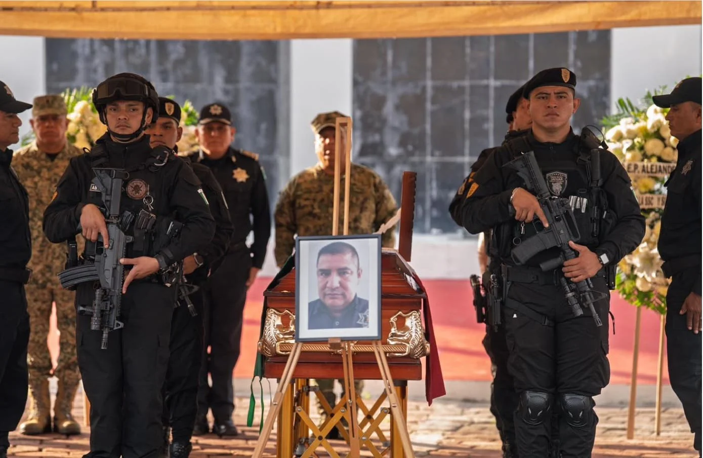 El lunes, la Secretaría de Seguridad Ciudadana (SSC) publicó “El contralmirante Julio César Gómez Torres, titular de la Secretaría de Seguridad Ciudadana de Quintana Roo, junto con miembros de todas las dependencias de la dependencia, rindieron homenaje al oficial fallecido en cumplimiento de su deber.