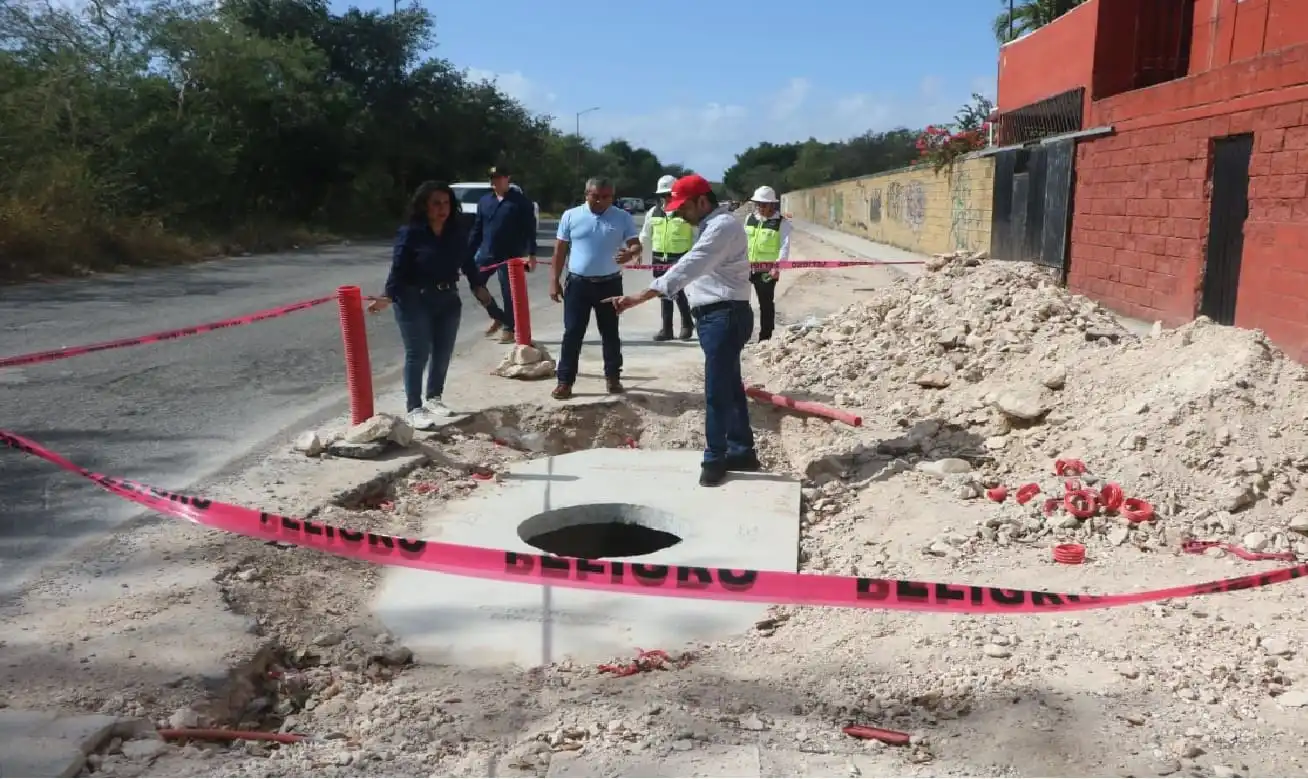 Playa del Carmen, QR — Funcionarios de la ciudad acompañaron el viernes a personal de CFE en un área de nuevas líneas eléctricas subterráneas. CFE está instalando nuevas líneas eléctricas a lo largo de la Avenida Paseo del Mayab.