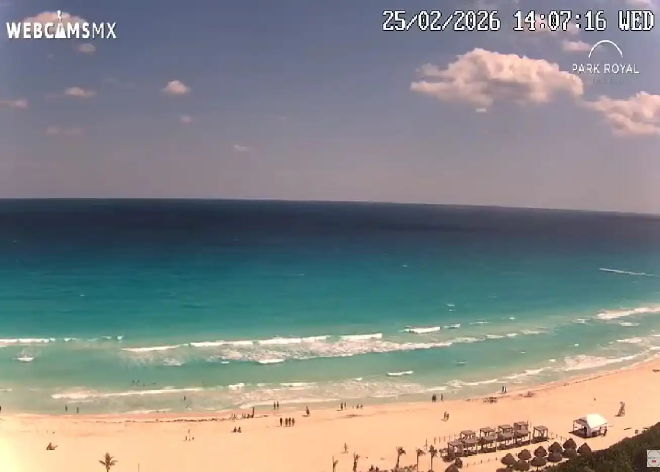 Webcam de playa Zona Hotelera de Cancún tarde del miércoles 25 de febrero de 2026.