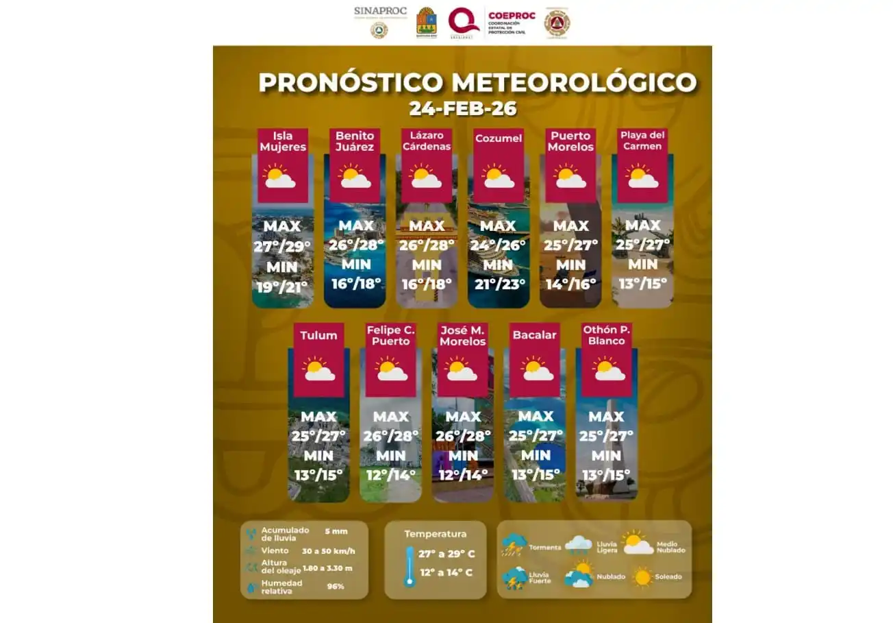 Protección Civil Solidaridad (Playa del Carmen) informó este martes que “la masa de aire polar ártico sobre el estado de Texas y el sureste de Estados Unidos, mantiene condiciones frías y frígidas sobre los estados del norte, noreste, oriente, sureste y centro de México.