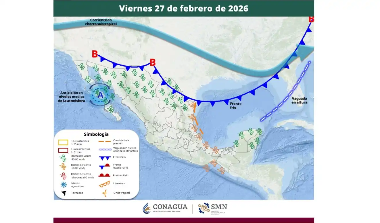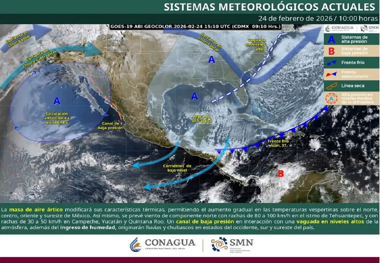 “Se espera que un nuevo frente frío ingrese al noreste del país este fin de semana, aunque aún no se sabe si llegará a la Península de Yucatán”.