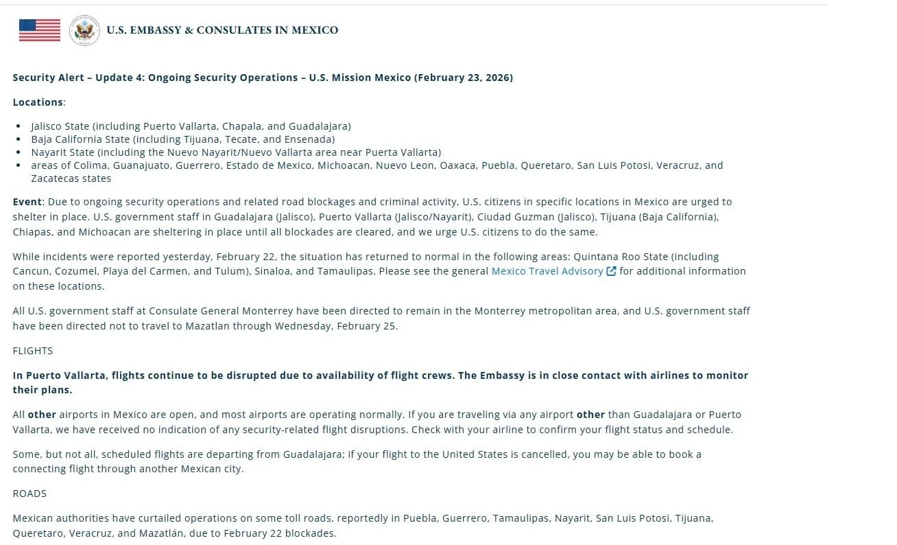 En una actualización de seguridad de 2026 el lunes, la Embajada de Estados Unidos en México reconoció que viajar a Cancún y la Riviera Maya es seguro y que las cosas han vuelto a la normalidad.