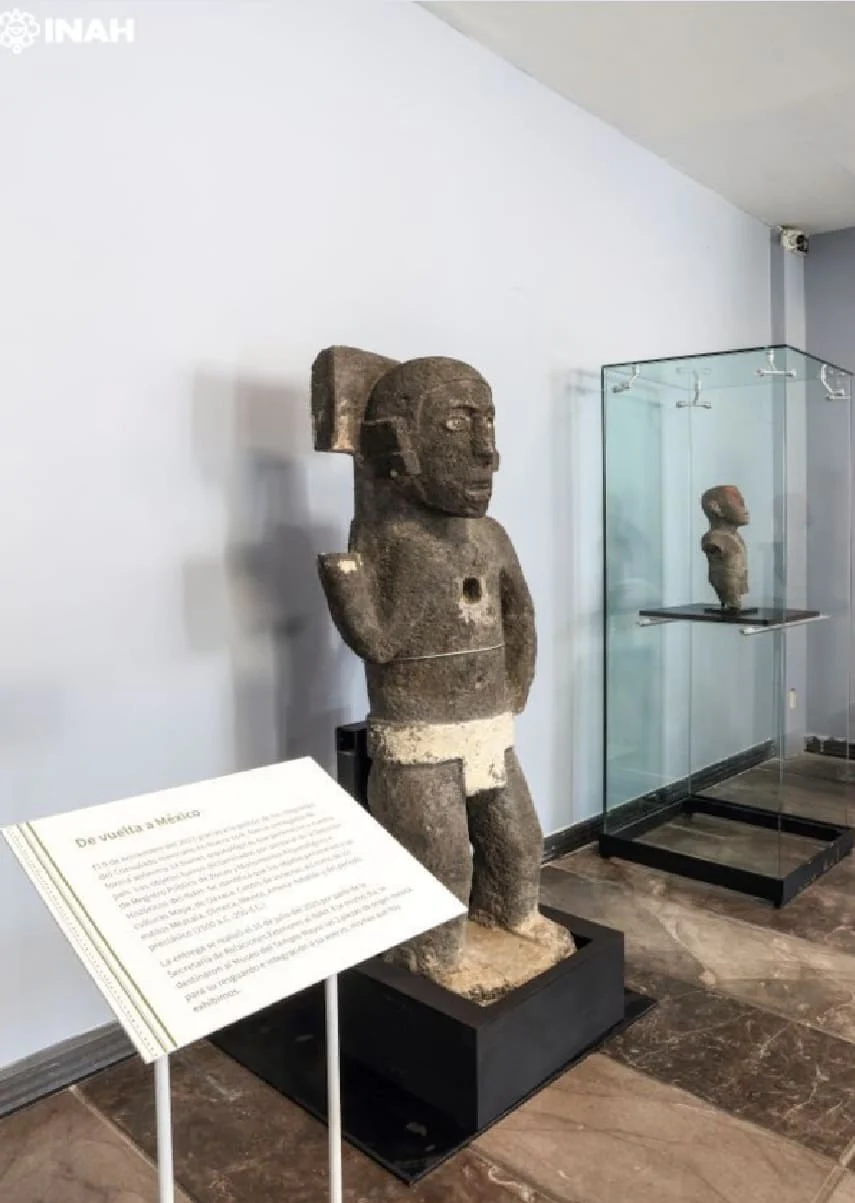 Las esculturas de un guerrero estelar y un macehual, repatriadas desde Nueva York, se sumaron a la exposición pública a principios de esta semana, informó el Instituto Nacional de Antropología e Historia (INAH).