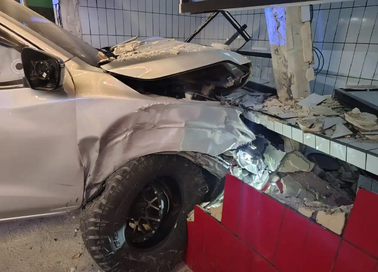 Cancún, QR — El conductor de una camioneta destrozó su vehículo después de estrellarse contra el frente de un restaurante. La policía estuvo en el lugar del accidente en SM 31 el jueves después de los informes del percance de un solo vehículo.