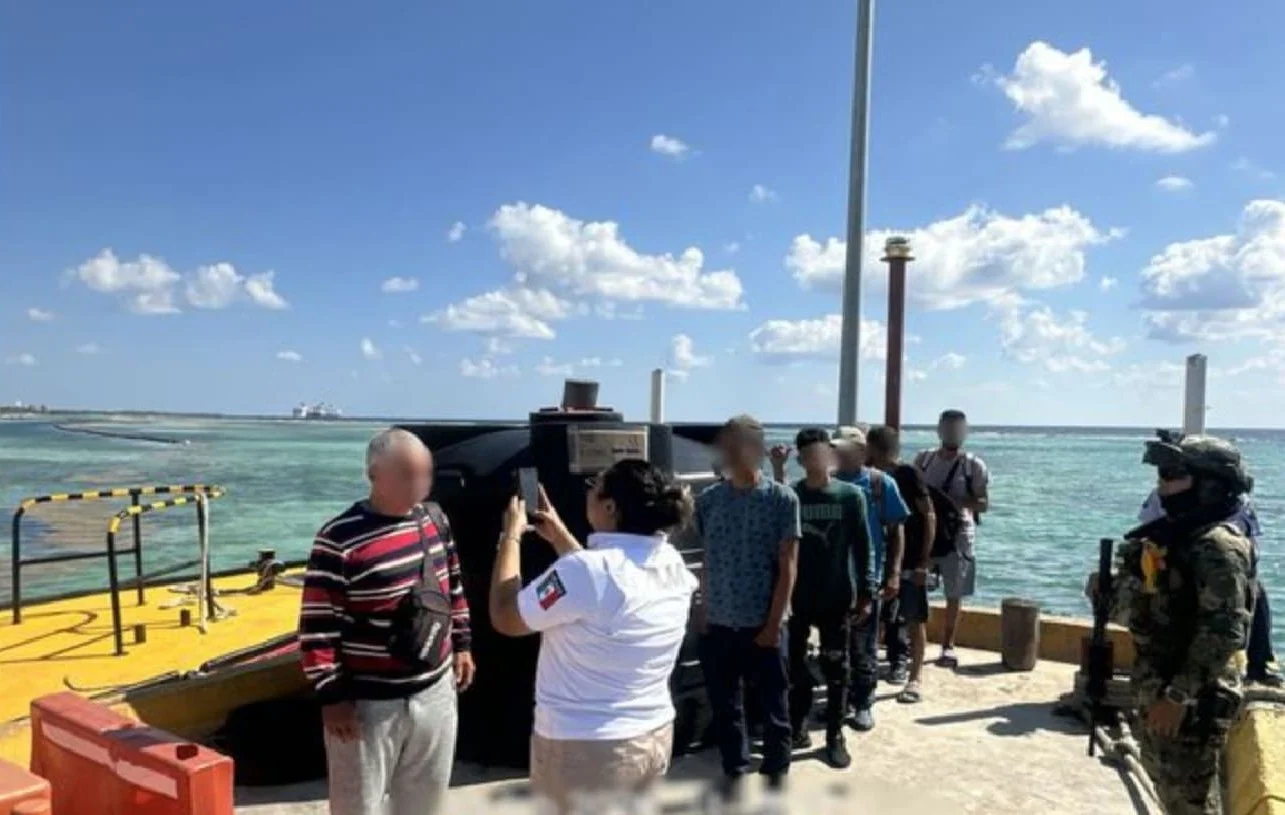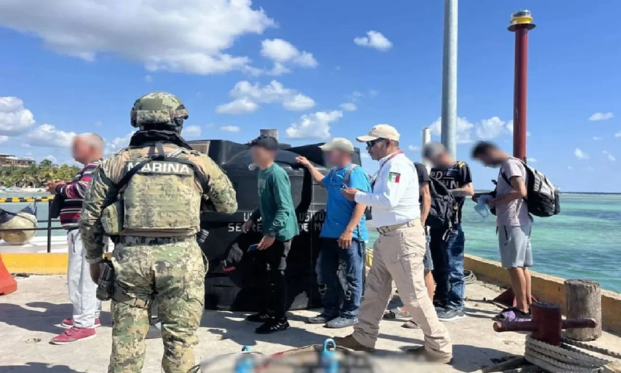 Los hombres fueron trasladados por la Marina al continente donde fueron recibidos por agentes de inmigración del INM el 11 de febrero de 2026.