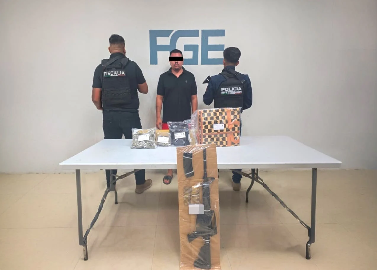 Durante su búsqueda, las autoridades encontraron marihuana, así como un arma de fuego larga calibre .233, un arma de fuego corta calibre 9 x 19 milímetros, dos cargadores y cartuchos reales.
