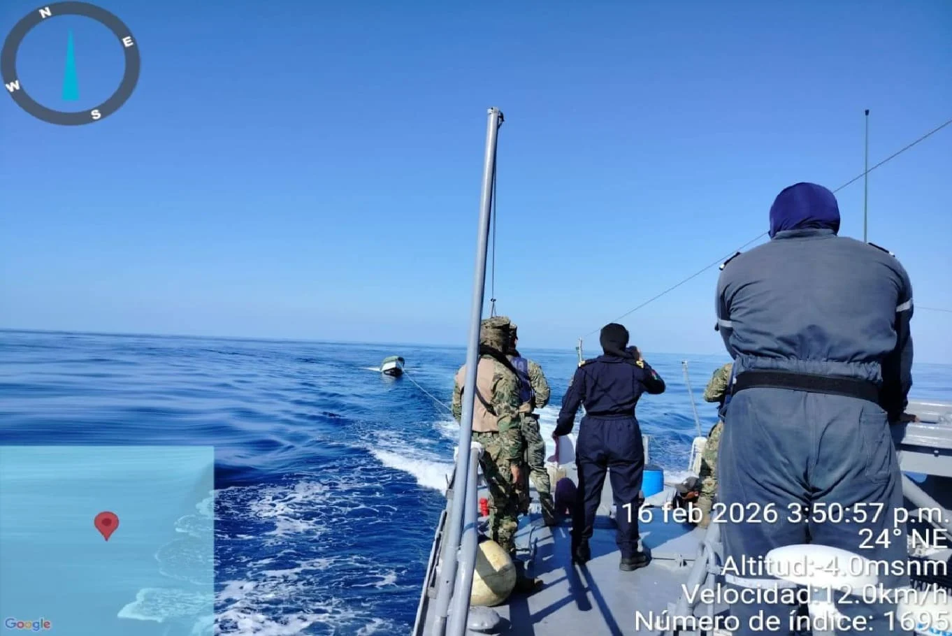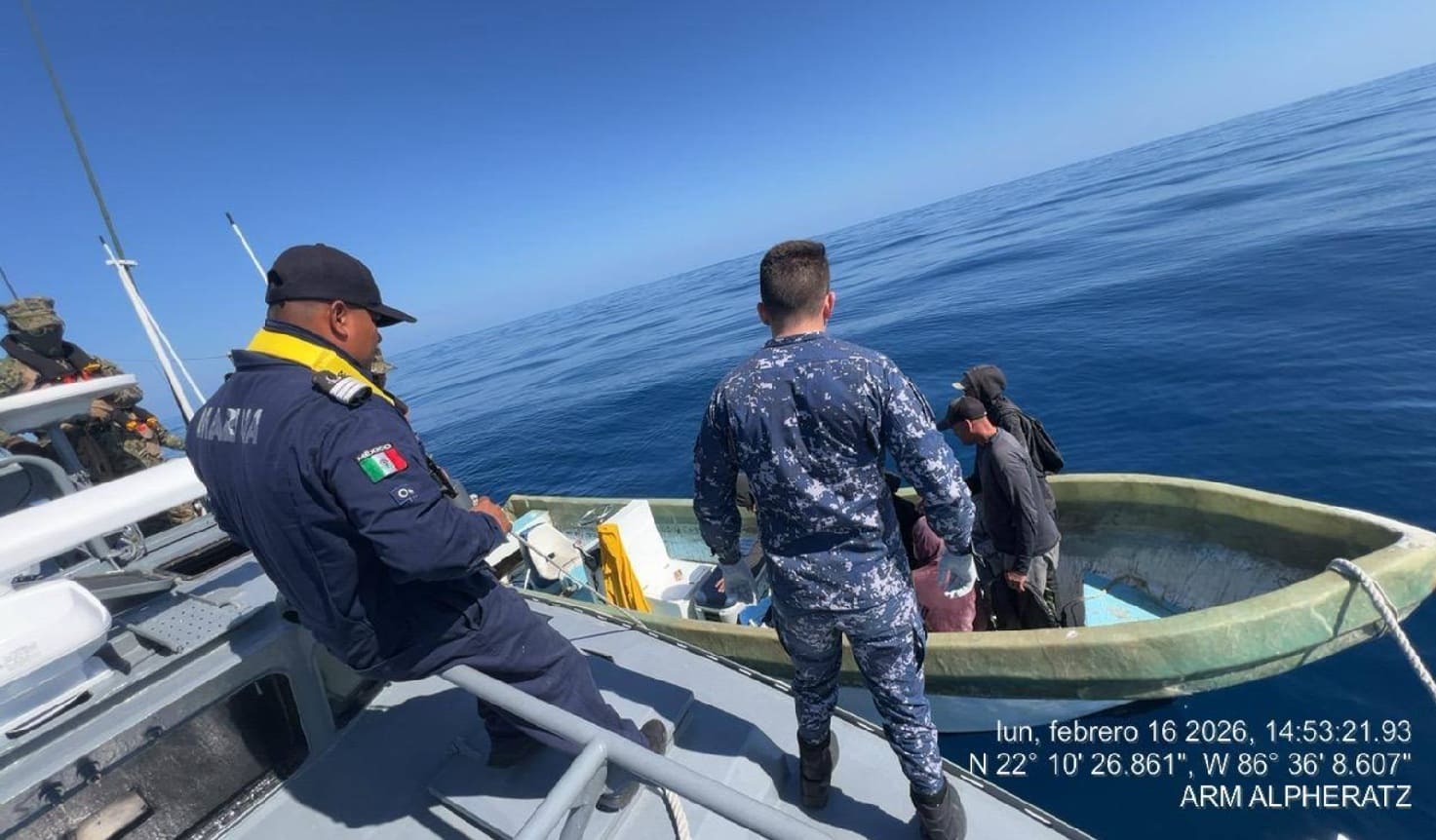 “Esta acción se llevó a cabo luego de que el Centro de Comando y Control de la Quinta Región Naval recibiera un reporte de que siete personas (cinco hombres y dos mujeres) a bordo de una embarcación se encontraban a la deriva”, dijeron.