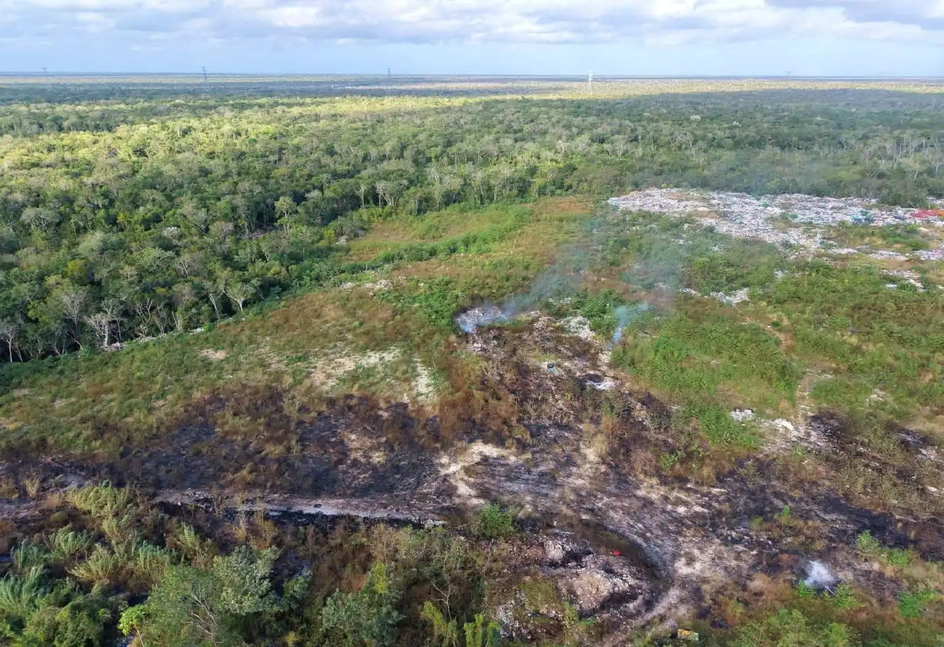 El incendio comenzó a lo largo del tramo de la carretera de Cancún a Mérida el 11 de marzo de 2026.