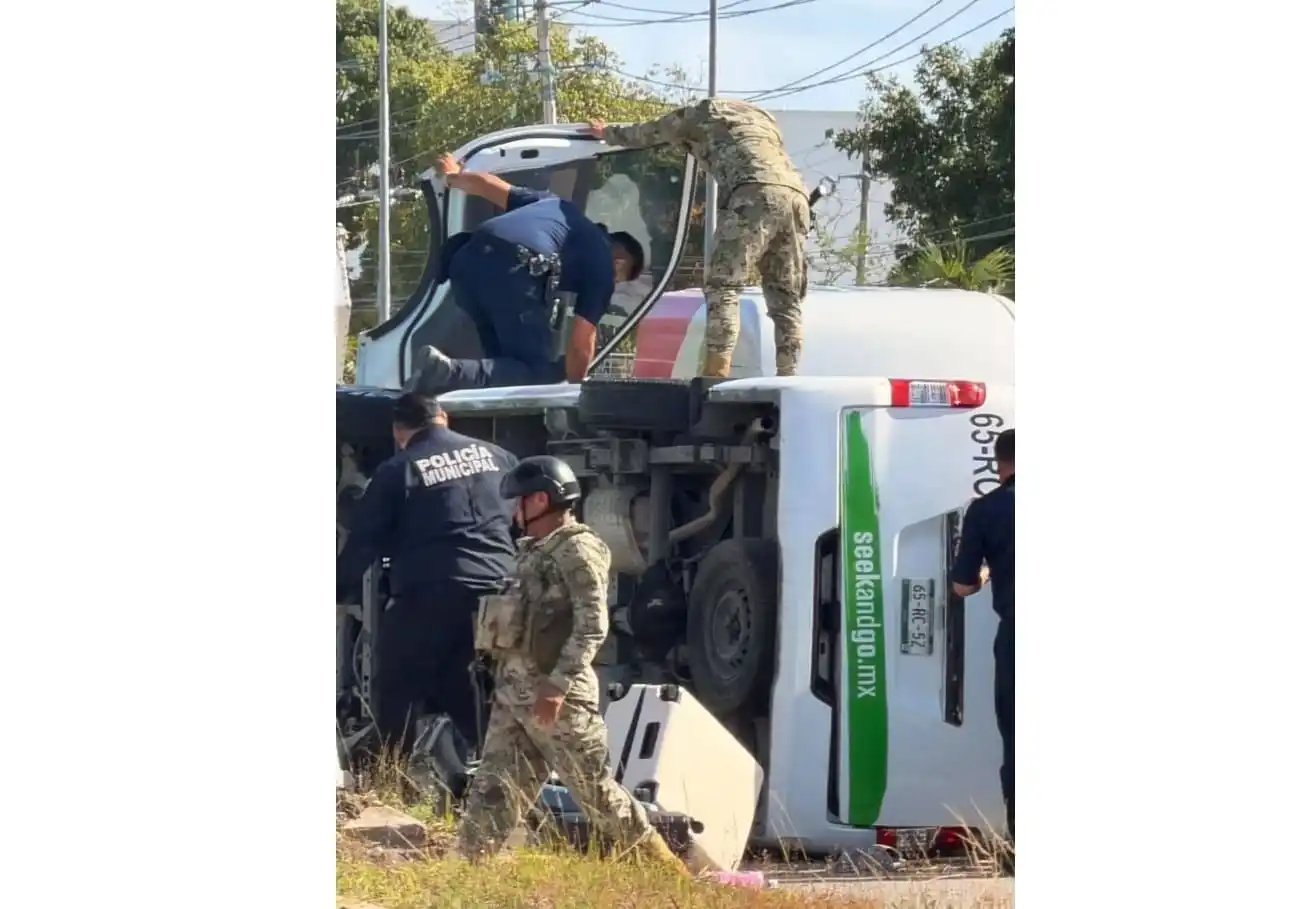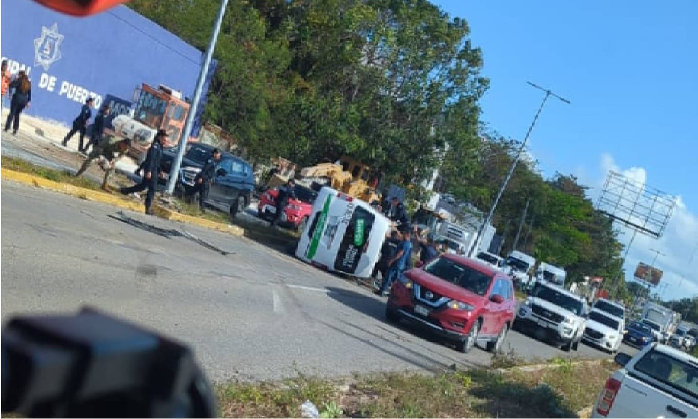 Puerto Morelos, QR — Al menos tres personas fueron trasladadas al hospital debido al vuelco de un solo vehículo el martes. Servicios de emergencia se encontraban en el lugar del accidente matutino cerca del paso elevado de Puerto Morelos.
