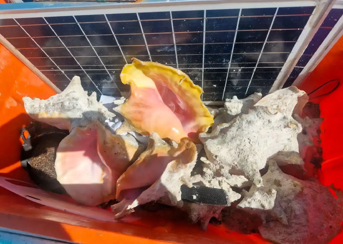 “Además de nueve conchas de caracol rosado y siete trozos de carne fresca cruda y eviscerada de caracol.