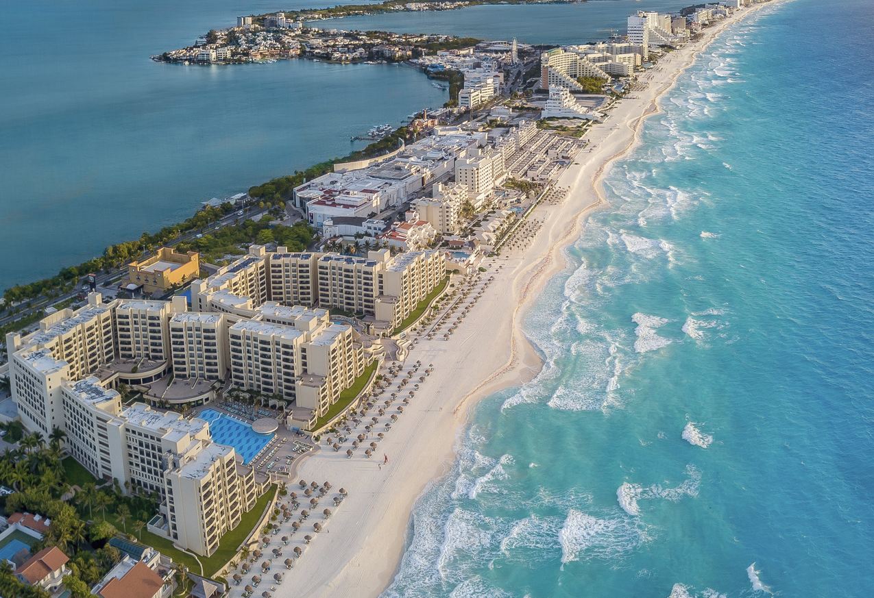 Vista Aérea de Playas y Hoteles en la Zona Hotelera de Cancún