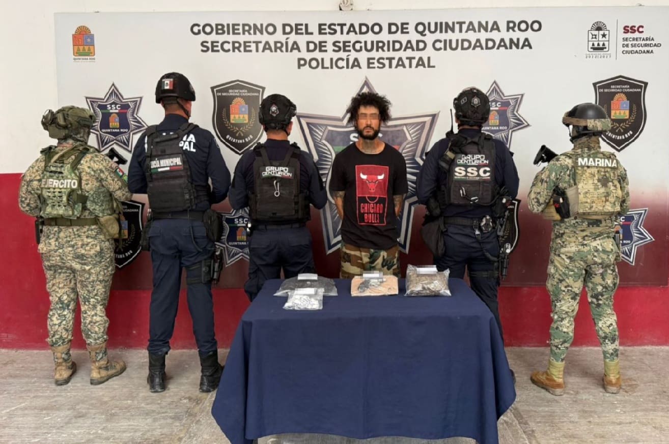 Detienen a presunto narcotraficante armado en calle Mahahual