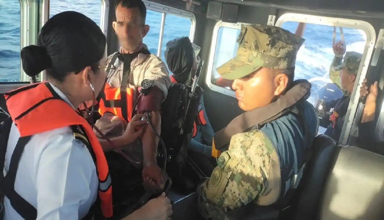 “Por lo que personal de la Estación de Búsqueda, Salvamento y Vigilancia Marítima (ENSAR) de Isla Mujeres y Servicios Médicos Navales a bordo de una embarcación clase Defender, arribaron al lugar donde se encontraban los individuos.