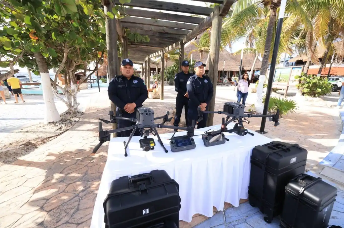 El alcalde entregó equipos aéreos estratégicos a la policía y entregó certificados a 29 agentes el mes pasado. El municipio de Puerto Morelos cuenta ahora con 76 policías activos.