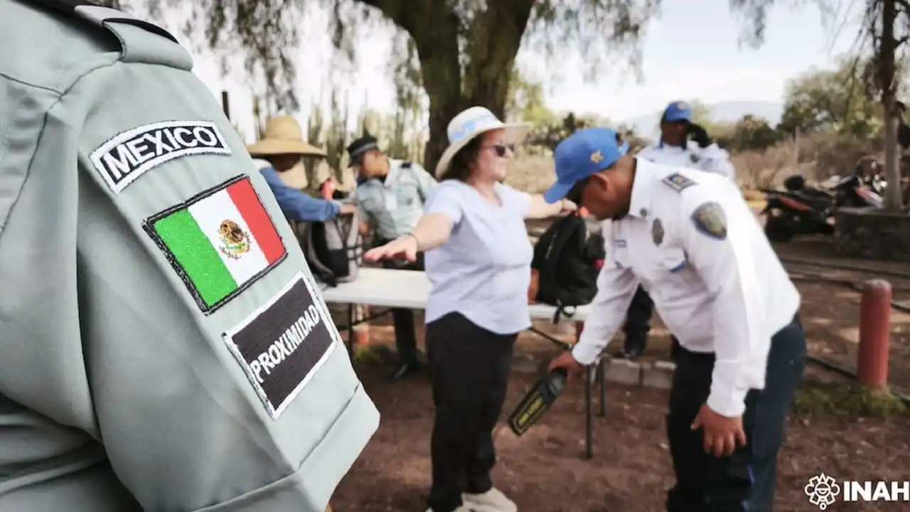 Desde el 24 de abril, titulares de los respectivos Centros del INAH lideran las nuevas medidas implementadas, entre ellas la inspección manual de mochilas y bolsos, complementada con detectores de metales móviles, y la supervisión de interiores y baúles de los vehículos.