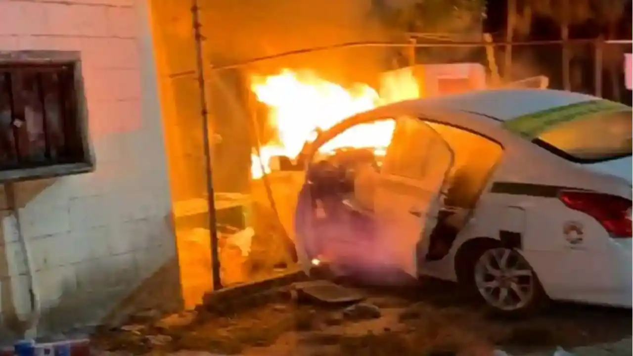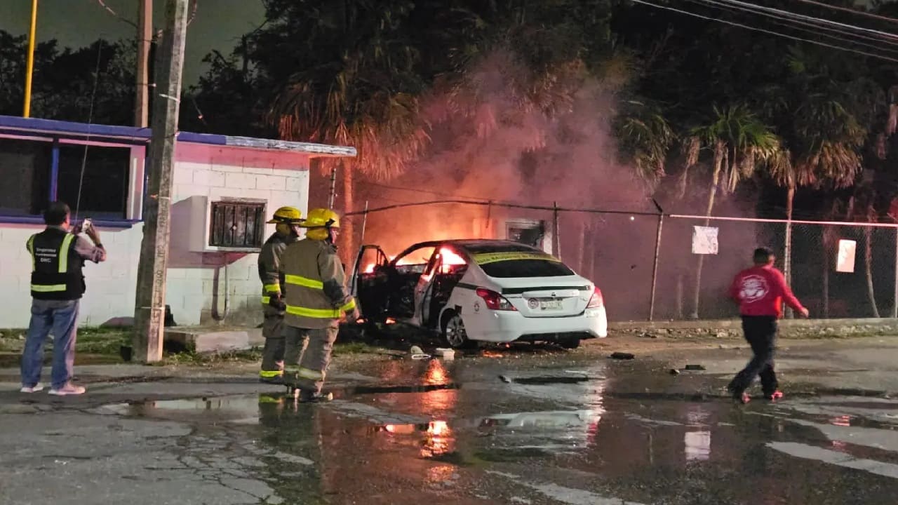 Los residentes cercanos acudieron al lugar después de escuchar el choque del auto contra la cerca de una planta de tratamiento de Aguakan. El taxi se detuvo junto a un registro eléctrico lo que provocó que se incendiara.