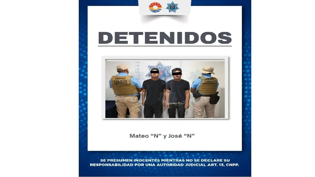 “Policías de Cancún detuvieron a dos hombres por su presunta participación en un asalto ocurrido en el kilómetro nueve del bulevar Kukulcán”, informaron en un informe el lunes.