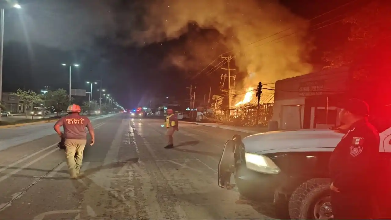 El más grave de los incendios fue la palapa que se reportó incendiada alrededor de las 5:30 am en el cruce de la avenida Tulum y la calle Escorpión. Personal de Protección Civil acudió como primeros auxilios y confirmaron que la estructura estaba envuelta en llamas.