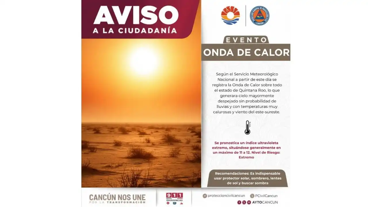 El martes, Protección Civil de Cancún emitió una advertencia de alta temperatura para los residentes debido a un índice de calor extremo.