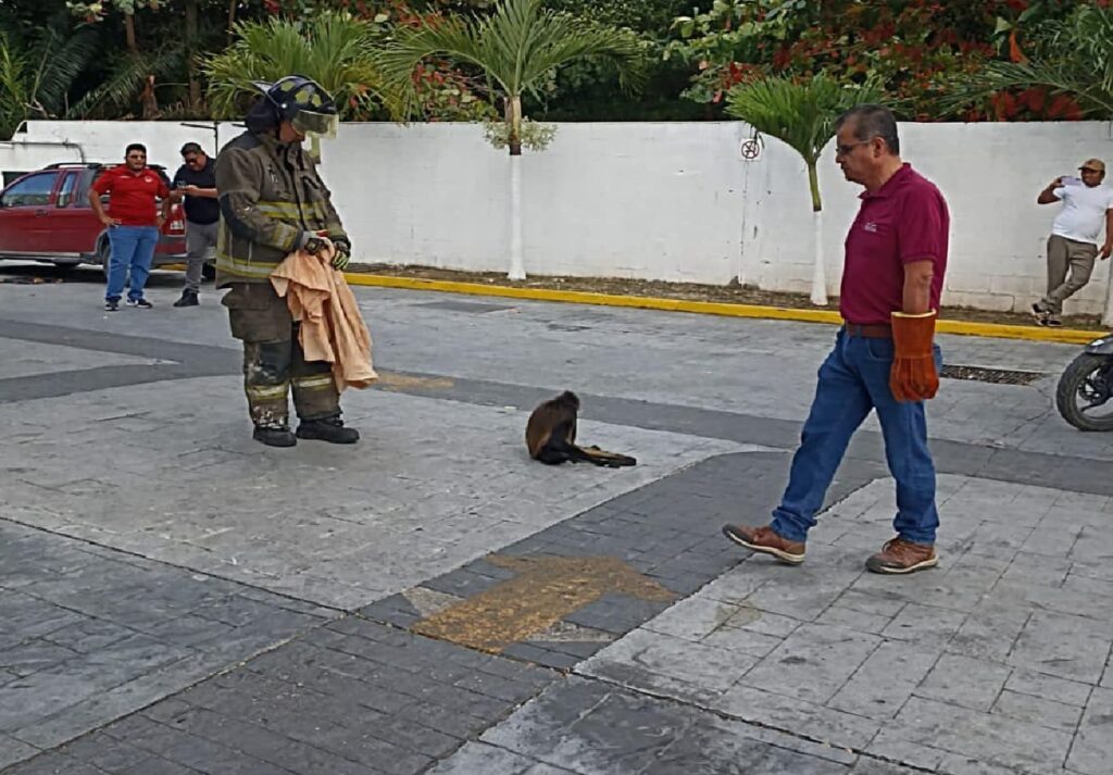 Cancún, QR — Servicios de emergencia en Cancún fueron enviados para rescatar a un mono ...