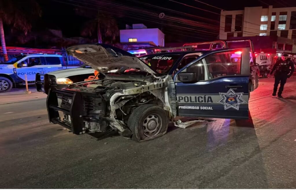 Cancún, QR — Una patrulla policial y un automóvil particular resultaron destrozados luego de chocar ...